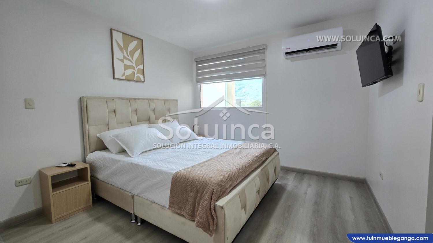 . Una (1) habitación principal, con cama King y su respectivo closet en melamina, además cuenta con un amplio y cómodo sanitario privado, con puertas de ducha en vidrio templado.